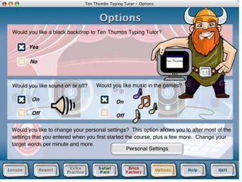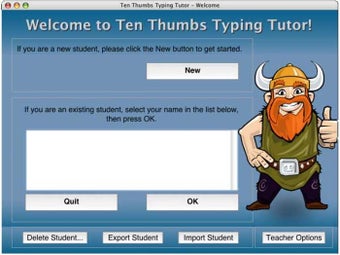 ¿Sabías que era posible teclear con más de dos dedos a la vez? Ten Thumbs Typing Tutor nos lo demostrará, mejorando nuestro nivel de mecanografía de forma divertida y a nuestro propio ritmo, mediante las instrucciones de un simpático vikingo, los sabios consejos de un mago y un par de juegos que mejorarán nuestra destreza.Ten Thumbs Typing Tutor, diseñado tanto para alumnos como para profesores, es un completo tutorial que nos enseñará el arte de la mecanografía. Primero, querrá saber algunas cosas sobre ti y tu forma de teclear, así como el nivel que quiera alcanzar. Te mostrará a continuación la postura adecuada para sentarse a trabajar y no lastimarte la espalda.Pero la parte principal del programa está en su motor de aprendizaje, primero de la posición de las manos y asignación de teclas a cada uno de los dedos (mediante animaciones muy logradas), segundo en la velocidad y precisión del tecleo, con informes muy completos y consejos respecto a lo que puedes mejorar. Esta parte se la lleva el mago, que nos enseñará el uso del dedo adecuado. Para completar el curso, podrás usar tus propios textos o jugar aprendiendo con sus dos juegos.Ten Thumbs Typing Tutor es también una herramienta pedagógica para profesores, ya que ofrece la posibilidad de una instalación en red, ideal para escuelas, universidades e incluso para empresas y demás organizaciones que quieran inculcar a sus empleados el arte de la mecanografía, y accesoriamente mejorar su rendimiento.